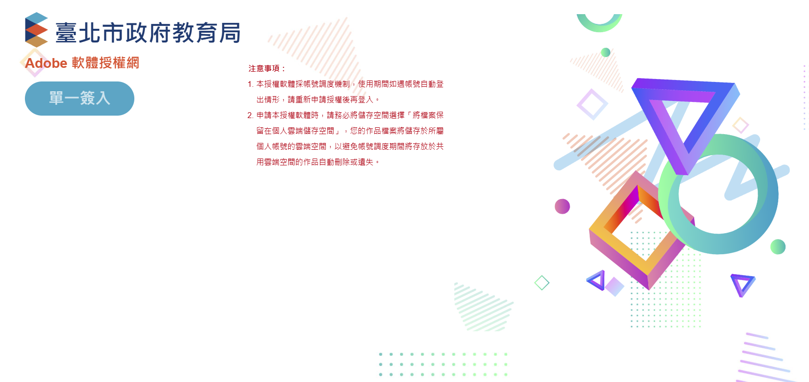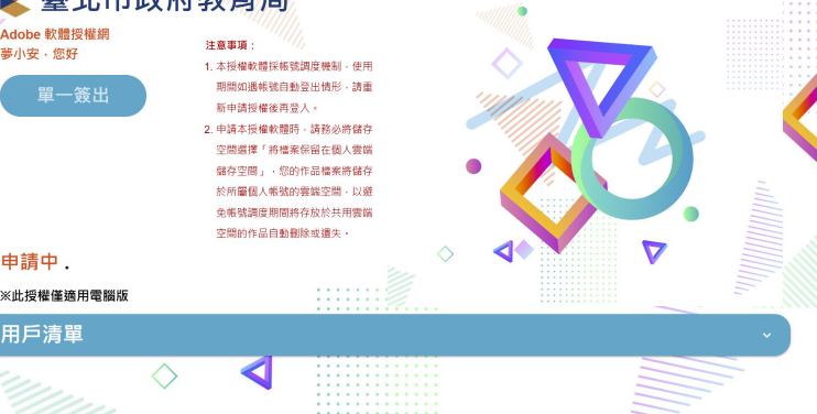 (一)登入網址:https://adobe.tp.edu.tw/。