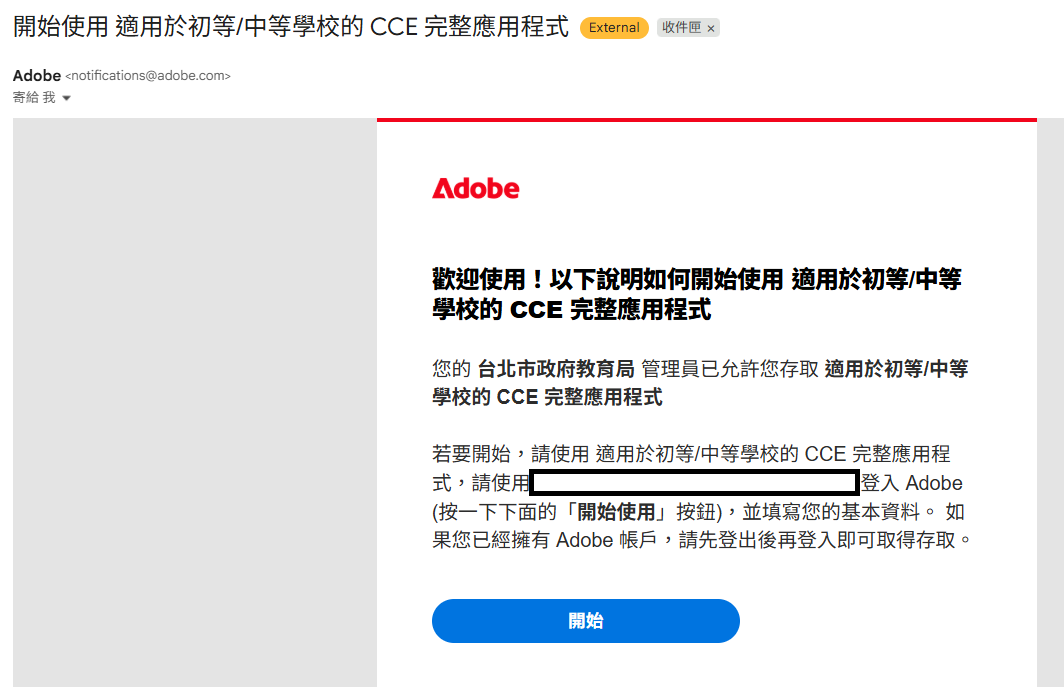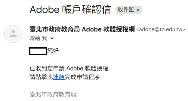 (五)申請完成後收到可以加入團隊的MAIL畫面 (*團隊指台北市政府教育局)