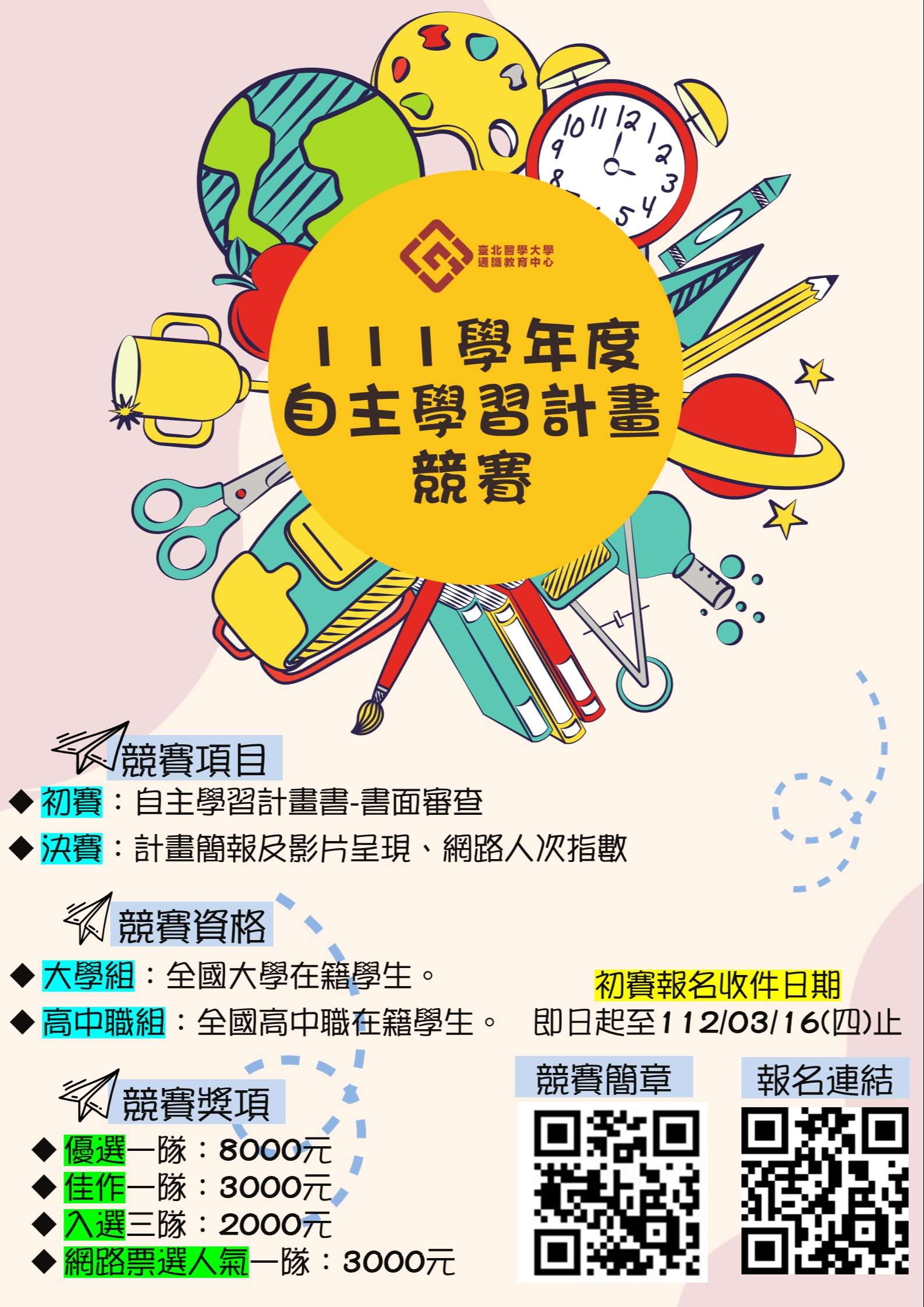 臺北醫學大學 辦理111 學年度自主學習計畫競賽,鼓勵同學踴躍報名!