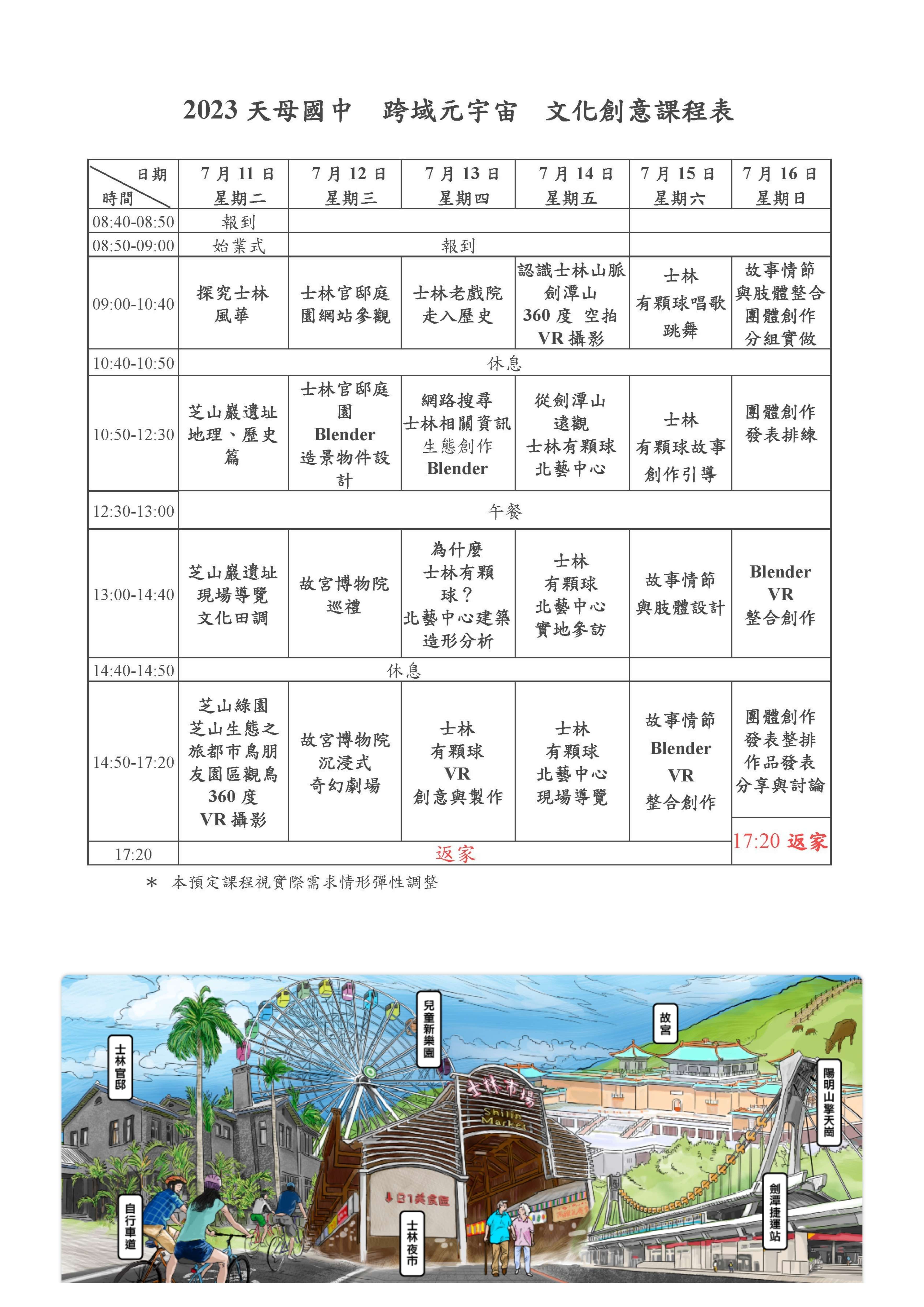 二、活動地點:天母國中美術教室、表藝教室、電腦教室、臺北藝術中心、劍潭山、芝山綠園、芝山巖、士林官邸、故宮博物館。