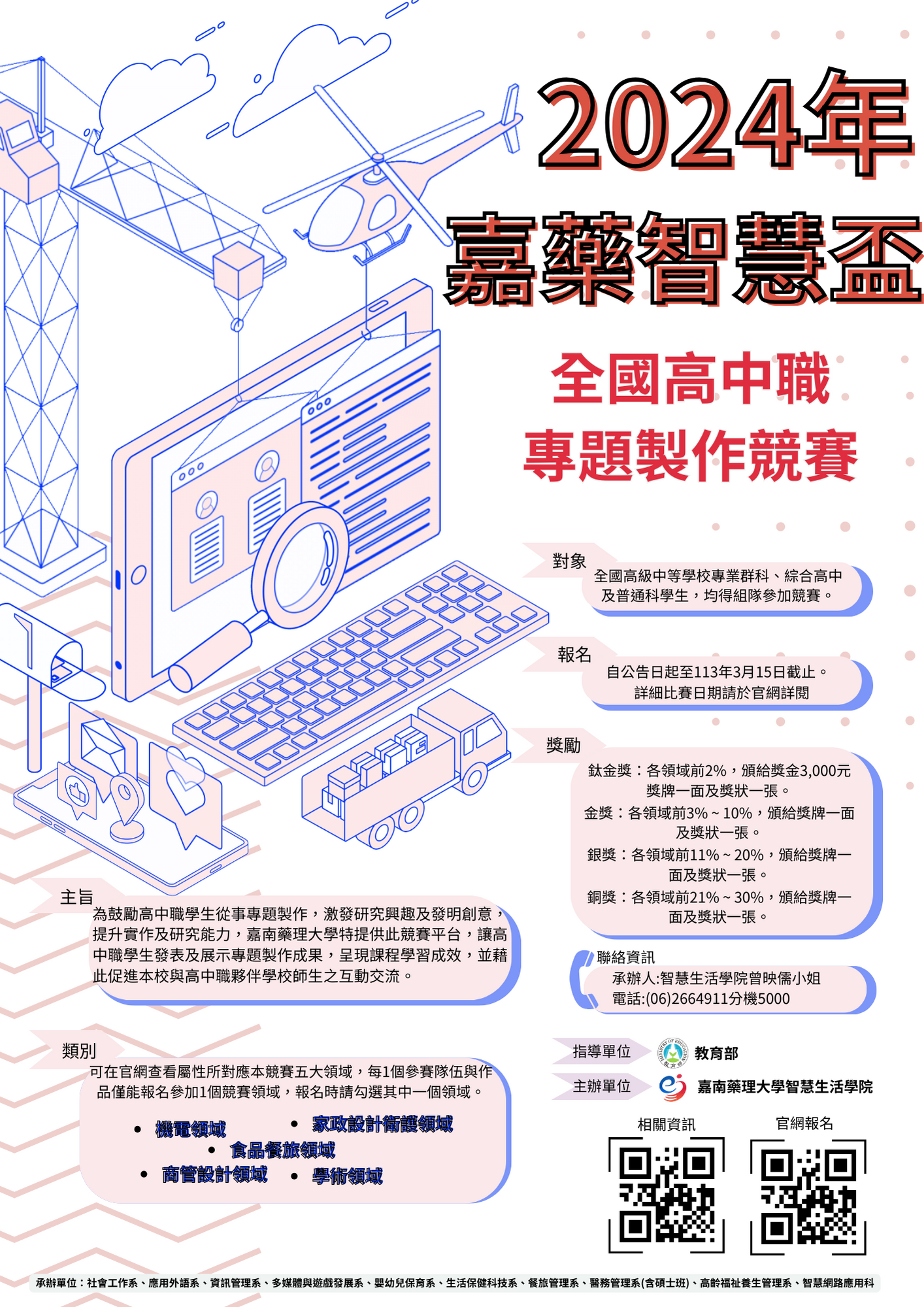 一、為鼓勵高中職學生積極參與專題製作,激發研究興趣及發明創意,提升實作及研究能力,爰提供該發表及展示專題製作成果競賽平台,並展現課程學習成效。