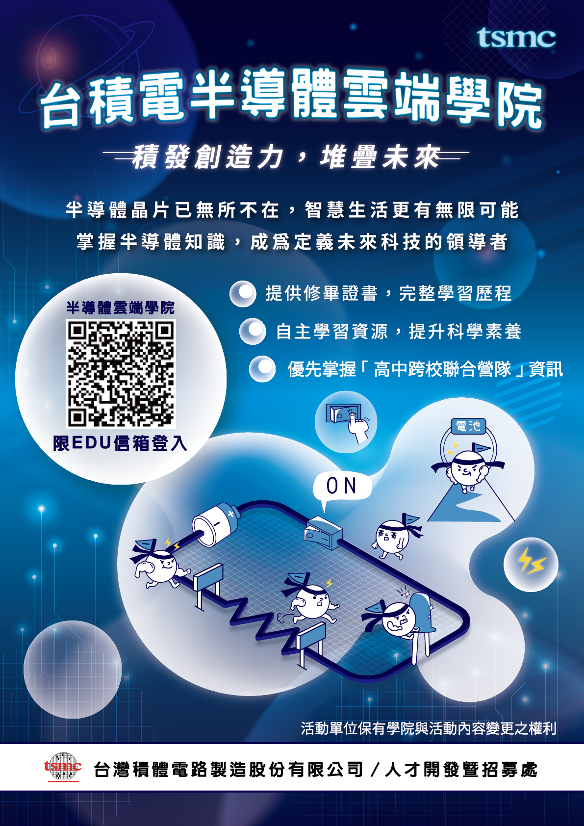 「台積電半導體雲端學院」網址 : https://www.tsmccloud-academy.com/