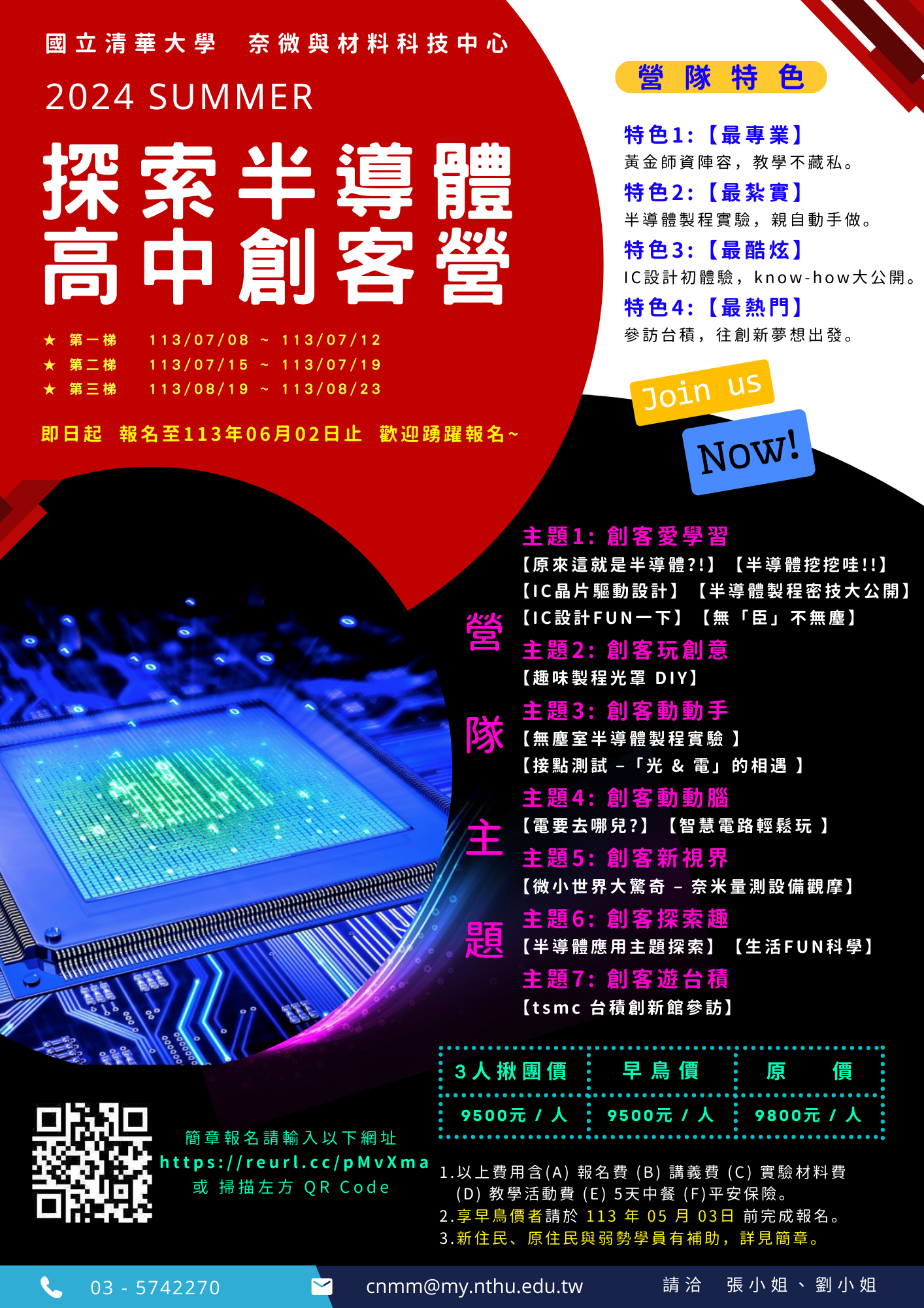 二、隨函檢附活動宣傳海報及活動簡章,或逕至本校奈微與材料科技中心網站下載查閱: