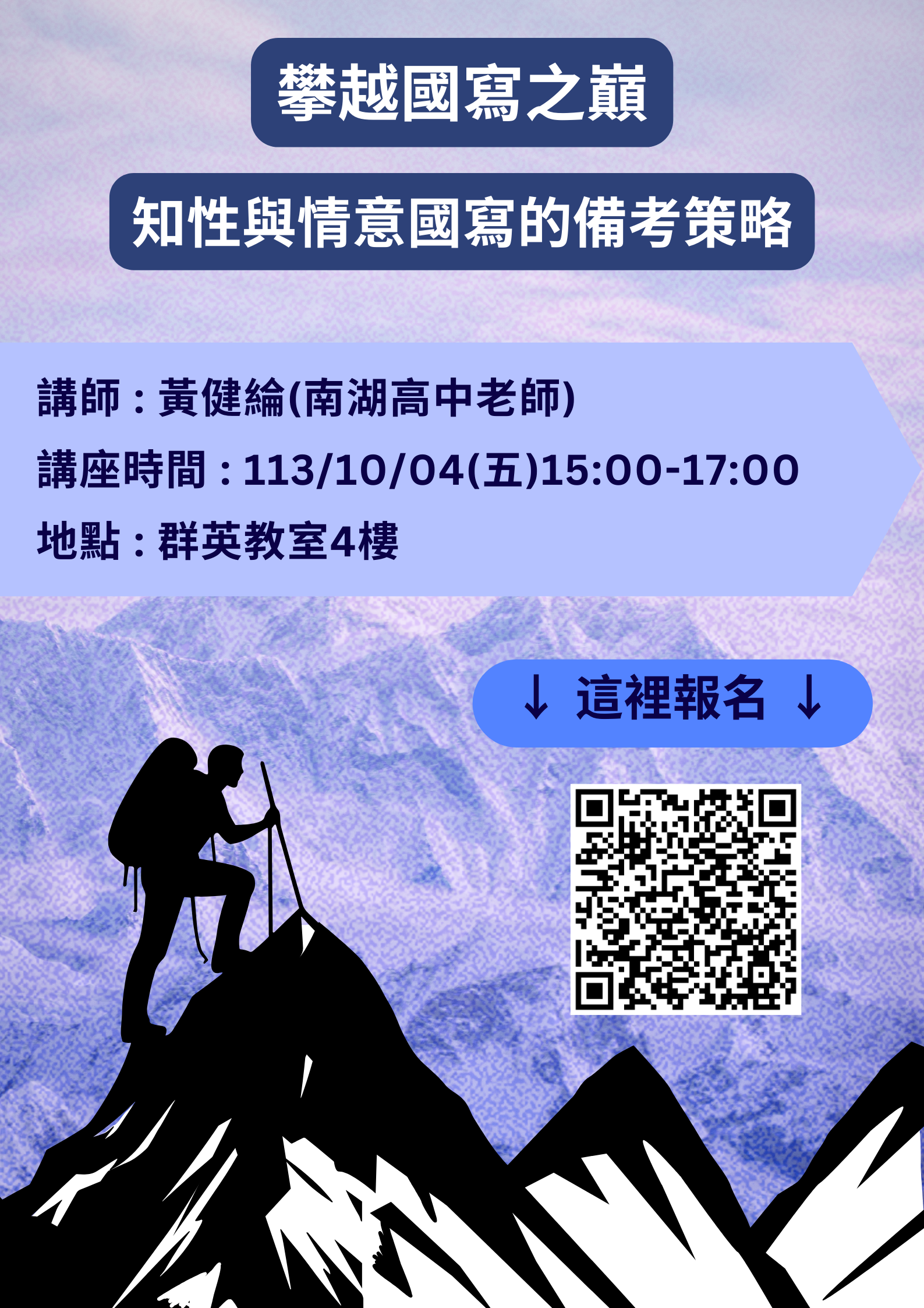 講題: 攀越國寫之巔:知性與情意國寫的備考策略