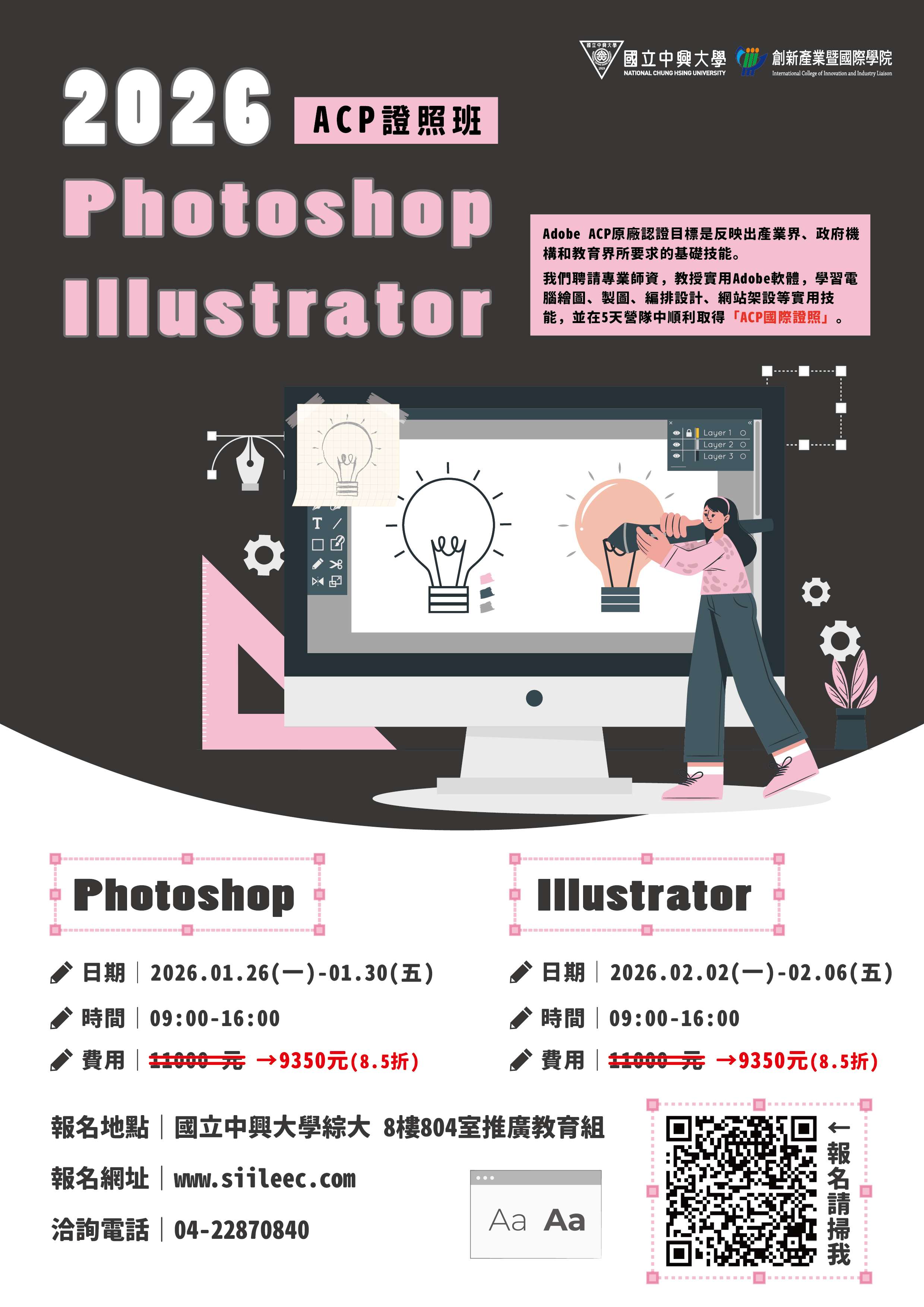 (五)ACP國際證照-Illustrator:2月2日至6日五日營。