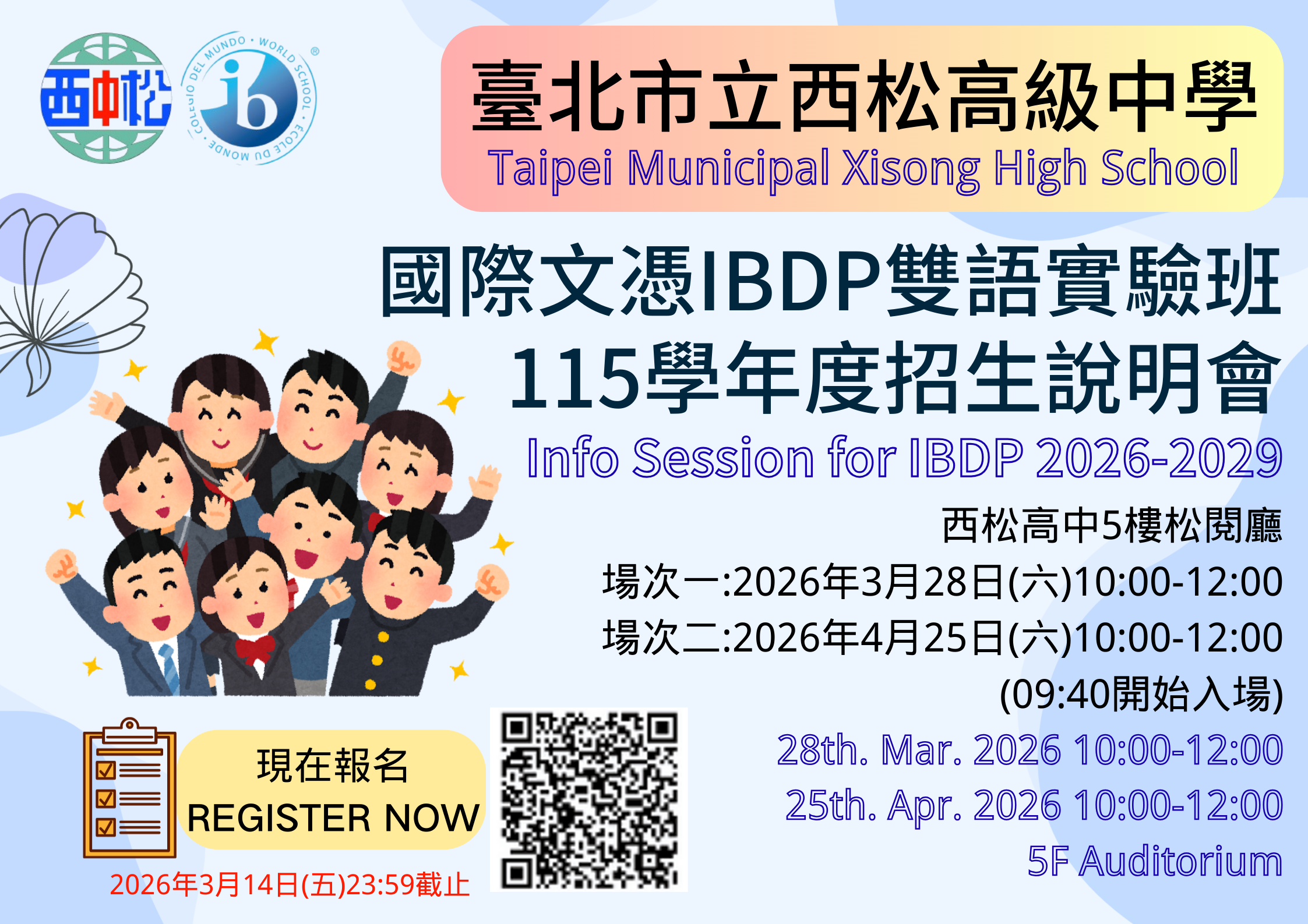 (五)歡迎關注本校國際文憑IBDP課程網站https://sites.google.com/ms2.hssh.tp.edu.tw/xisongibdp/?pli=1,獲得最新訊息。