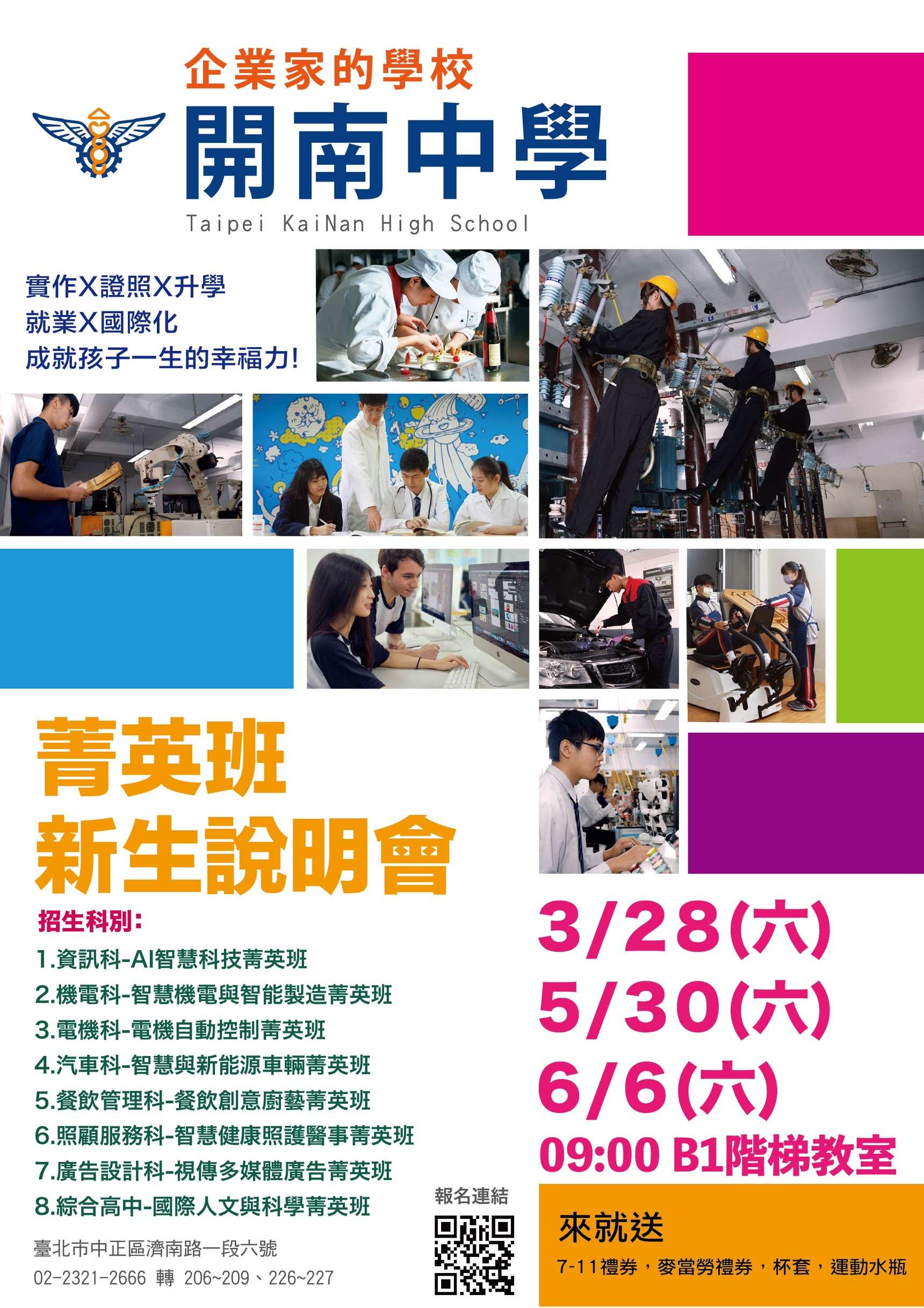 三、報名網址如下:開南中學官網首頁:http://web1.knvs.tp.edu.tw/網路報名/免試入學家長說明會線上報名.asp