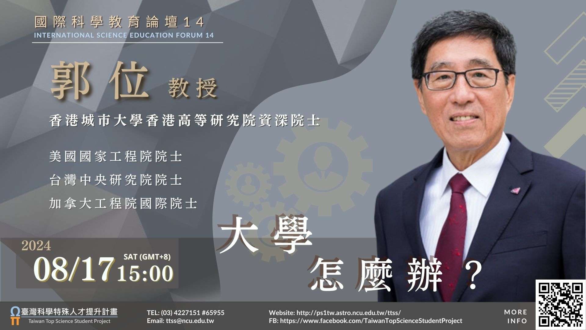 一、本次講座由香港城市大學香港高等研究院資深院士郭位教授主講,藉由遍訪世界各地知名大學及部分地區中學校長對談的這些經驗,分享他對於高等教育的思考,和以社會需要及問題導向研究為本的大學教育展望。