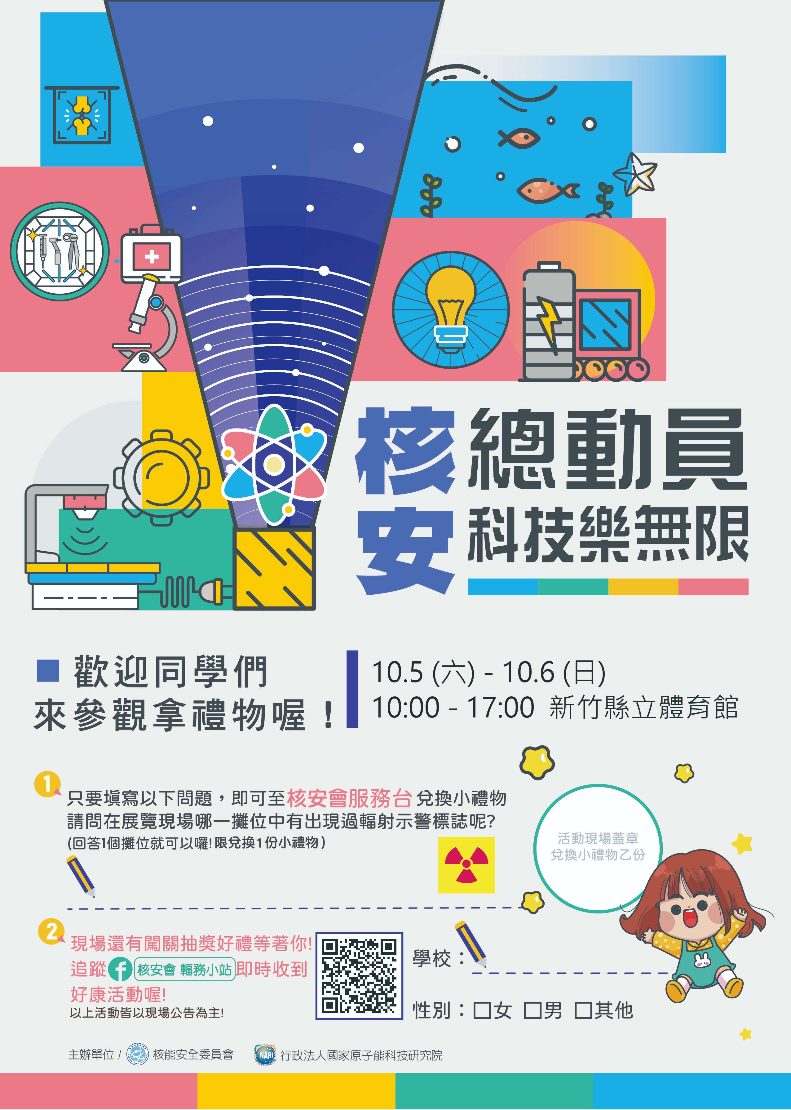 二、旨揭科普展將透過闖關遊戲,以趣味性方式介紹「輻射在生活中的應用與防護、如何檢測海洋中的氚、核電廠怎麼除役、什麼是核廢料」等內容,現場亦有摸彩活動,請貴校(含國立學校)鼓勵學生踴躍參加。