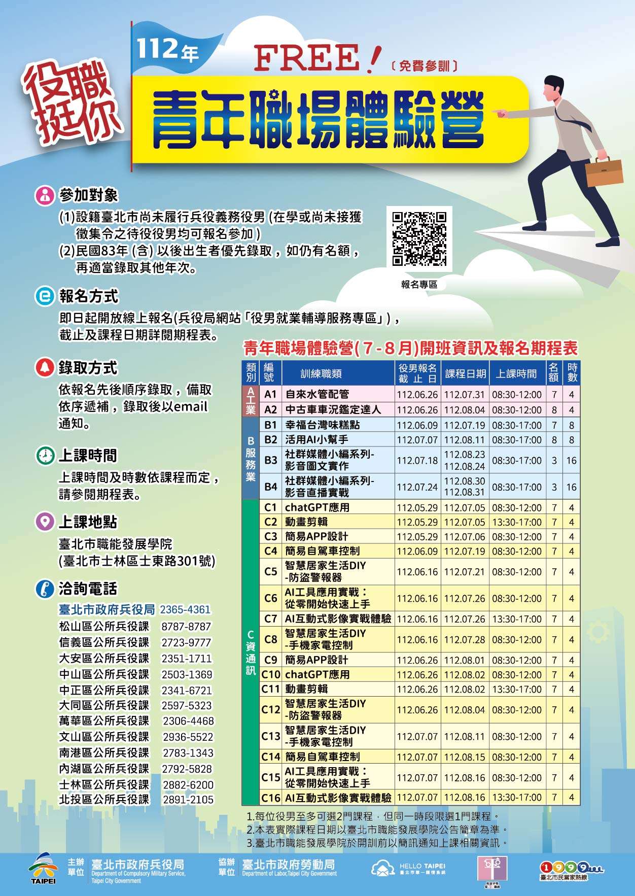 (一)設籍臺北市尚未履行兵役義務役男(在學或尚未接獲徵集令之待役役男均可報名參加)。