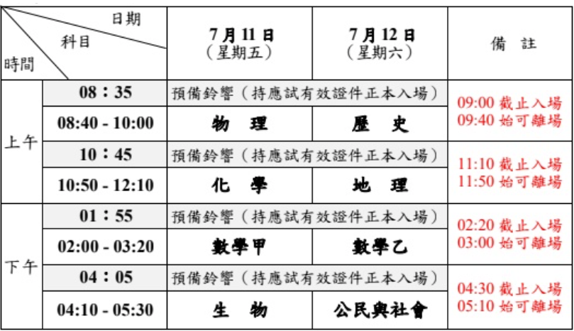 四、分科測驗開放家長陪考,考生、家長可自由進出校園。