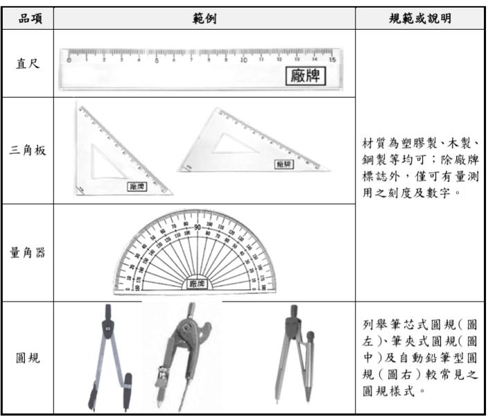 □ 文具 可携帶「2B 鉛筆」、「黑色原子筆」、「透明墊板」、「修正液(帶)」、「直尺」、「三角板」、「量角器」、「圓規」