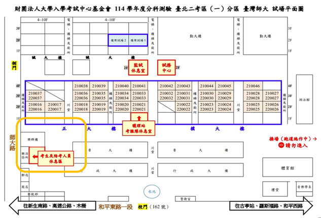師範大學(校本部) 文薈廳 供考生休息(服務人員駐守其內,休息處空間有限,考生請多運用