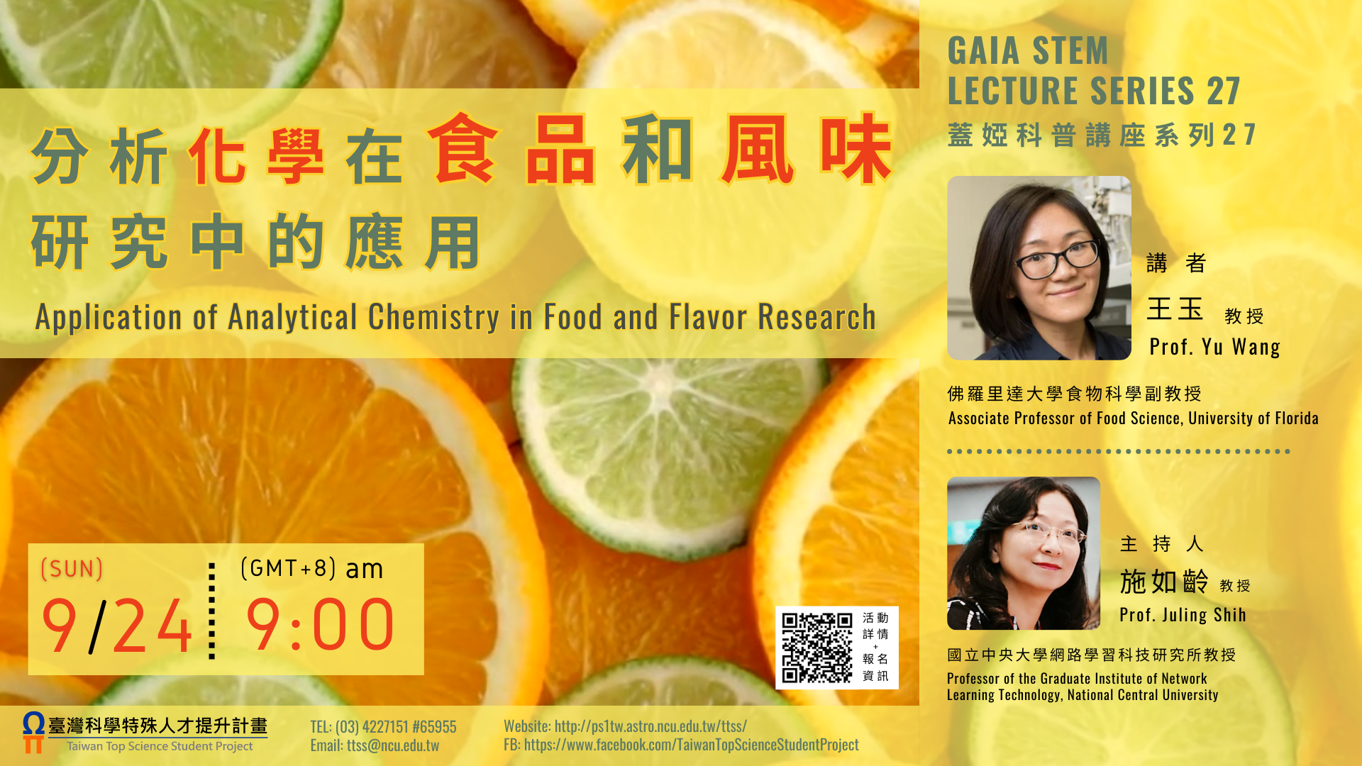 (一)講者:王玉教授(佛羅里達大學食物科學)。