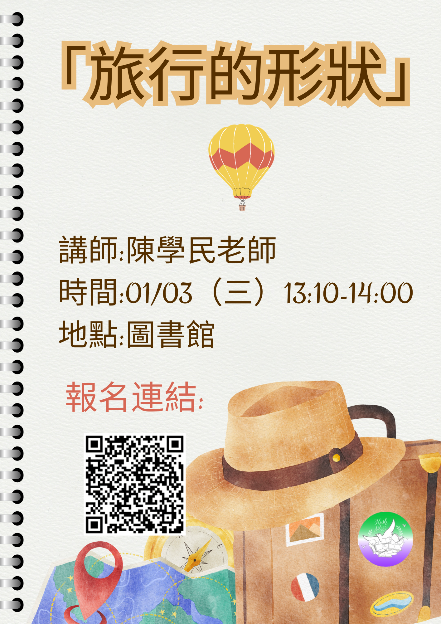 講者: 旅遊作家 陳學民 老師 時間:113/01/03(三)13:00-14:00