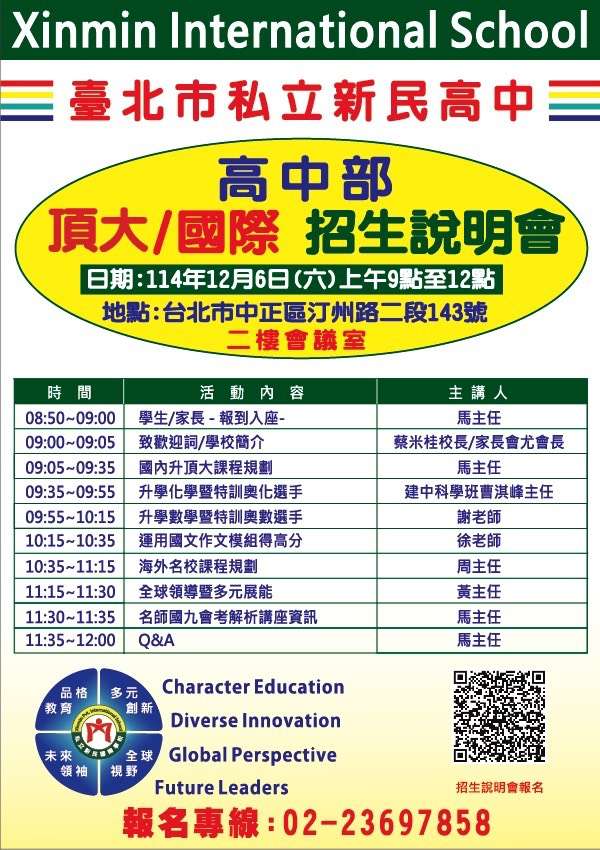三、報名方式:可至本校官網或掃描附件QR Code。