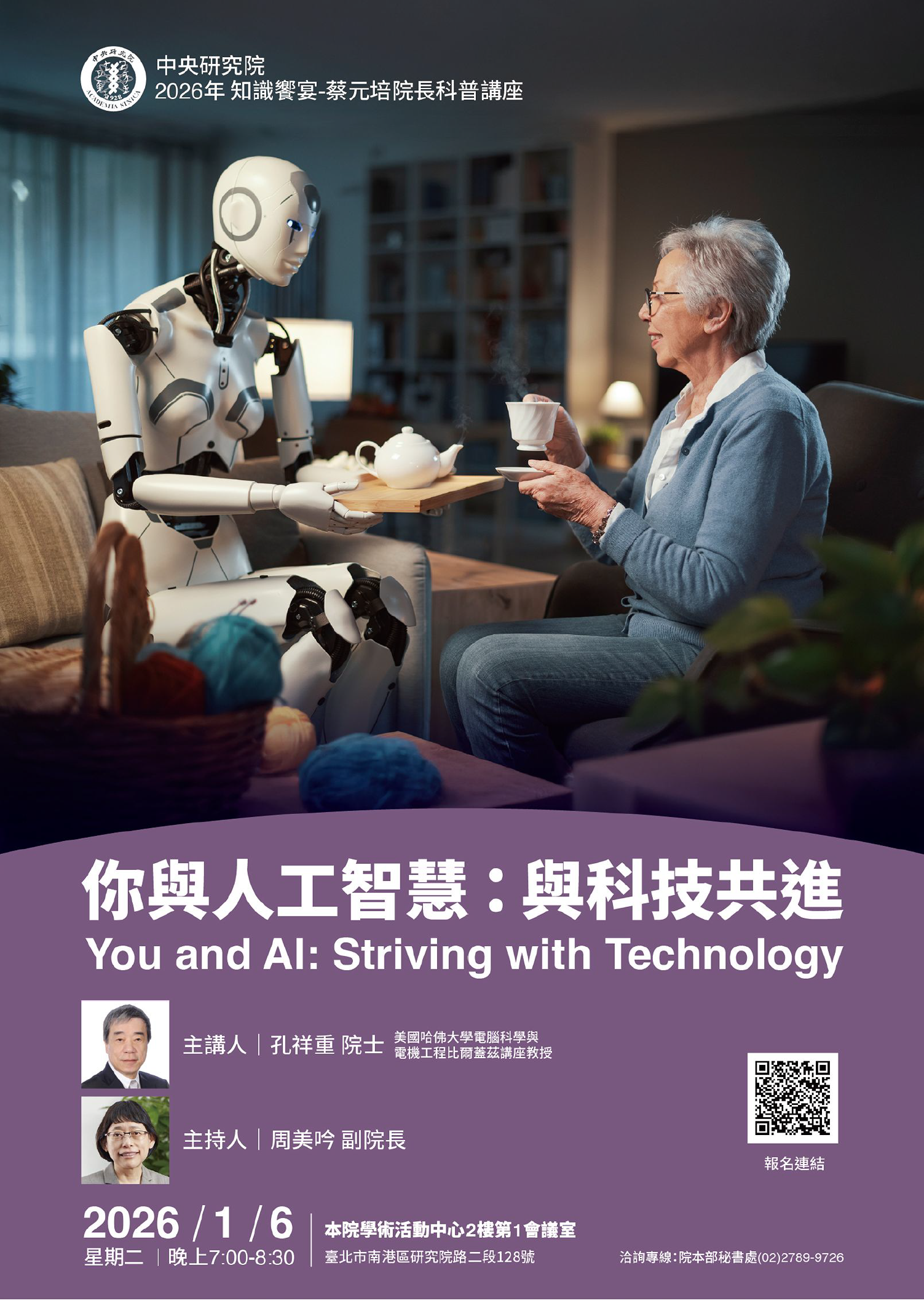 一、講座時間:115年1月6日晚間7時至8時30分,地點:本院學 術活動中心2樓第1會議室。