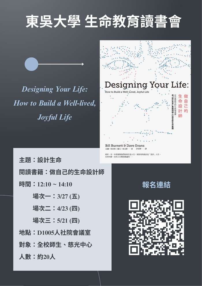 (一)活動名稱:東吳大學生命教育讀書會—設計生命。