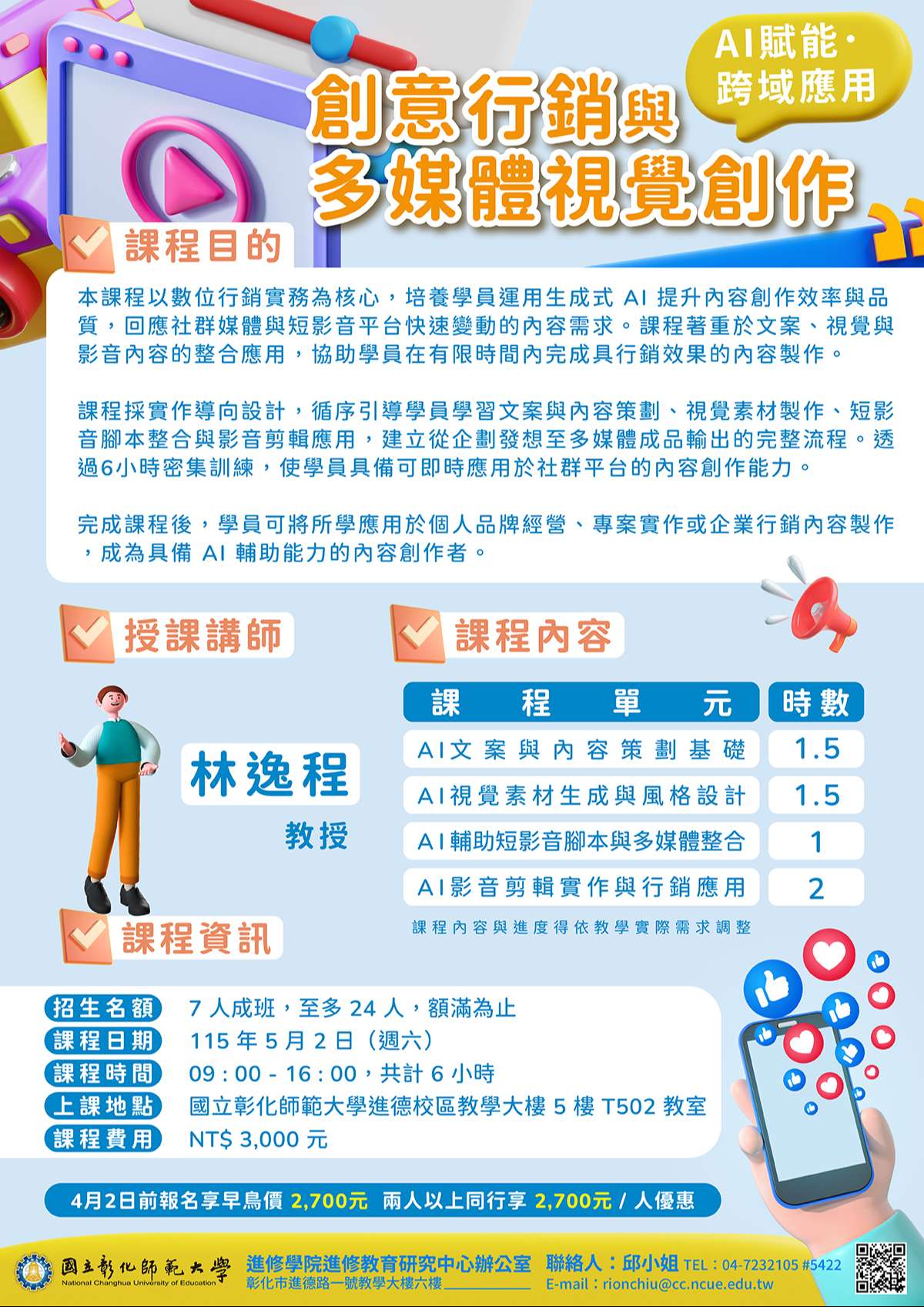 一、「【AI賦能.跨域應用】創意行銷與多媒體視覺創作」